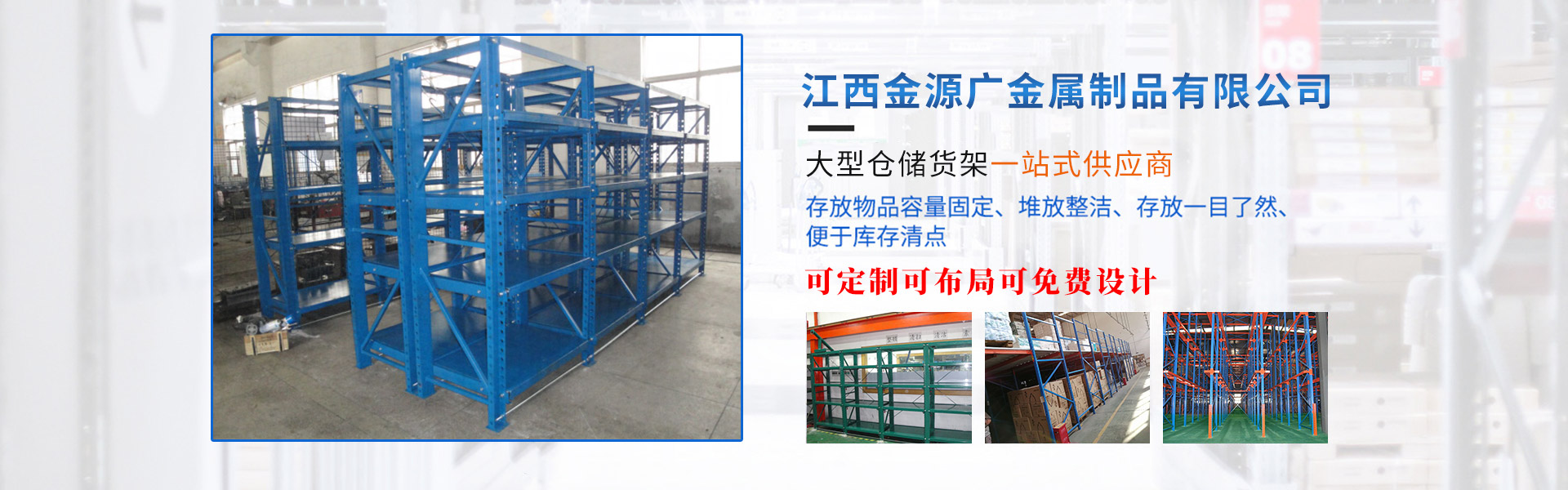 江西金源廣金屬制品有限公司致力于物流系統集成裝備和物流信息技術的研發(fā)、設計、制造、安裝調試和銷售的專業(yè)公司,公司員工從事物流行業(yè)20多年,目前江西、江蘇、廣州等都有分公司。公司擁有數名多年物流設備從業(yè)經驗的技術、設計及銷售人才。公司提供倉儲物流設備及相關服務,擁有專業(yè)設計團隊、單獨研發(fā)部門、品質部門、售后部門可以根據客戶的需求進行“量身定做”,及時而準確地為客戶提供完整的倉儲方案。